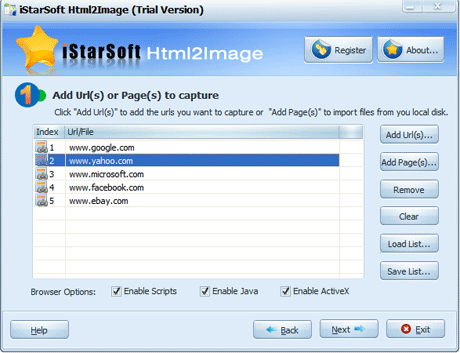 | iStarSoft Html2Image là chương trình hỗ trợ bạn chụp ảnh nhanh của các trang web từ bất kỳ URL nào dưới định dạng hình ảnh phổ biến như BMP, JPG, GIF, PNG, TIF,… iStarSoft Html2Image được thiết kế chuyên dùng cho việc chuyển đổi nhiều trang web cùng lúc. Nó thực sự là công cụ cần thiết cho các nhà thiết kế web, webmaster, blogger,… Với giao diện đơn giản, bạn hoàn toàn có thể dễ dàng cài đặt và sử dụng iStarSoft Html2Image để thực hiện công việc sao cho hiệu quả nhất.